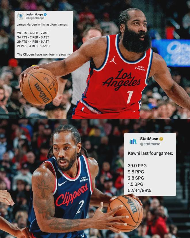 快船四連勝期間,倫納德場均轟下39分9.8籃板2.8搶斷1.5蓋帽,三分命中率44%,當選西部周最佳球員。快船本場首發:哈登、鄧恩、倫納德、科林斯、大洛佩斯。國王首發:威少、德羅贊、基根-穆雷、阿丘瓦、雷諾。